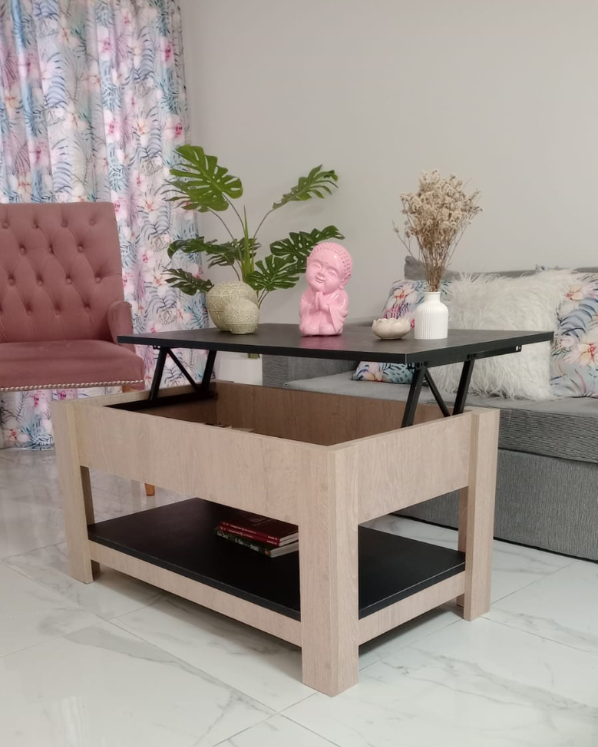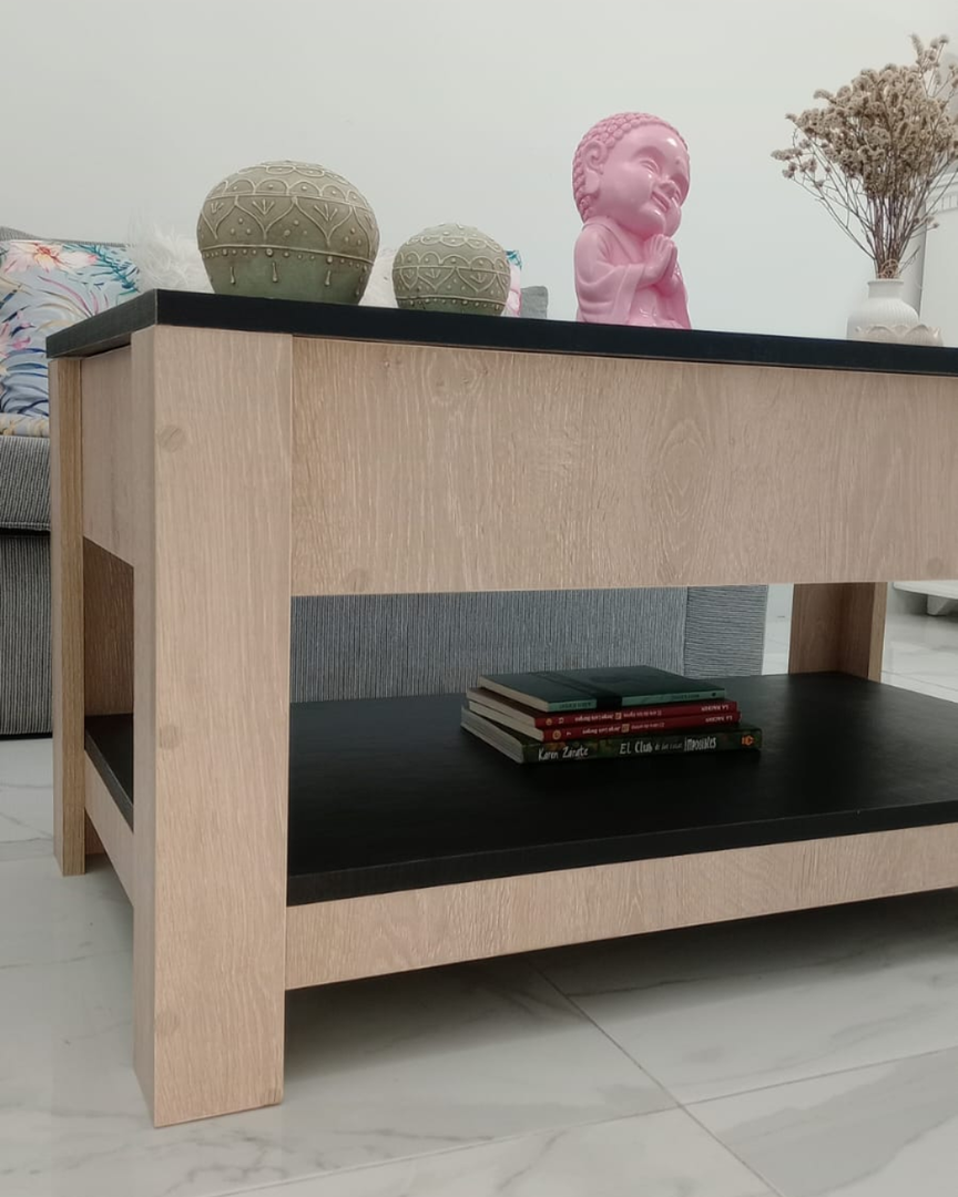 Presentamos esta moderna mesa ratona elevable de melamina, ideal para optimizar espacios reducidos sin renunciar al estilo. Su formato práctico permite trabajar, comer o tomar mates desde el sillón, y además cuenta con un espacio interno para guardar lo esencial (¡o no tanto!), como controles remotos, libros, cuadernos o cargadores.